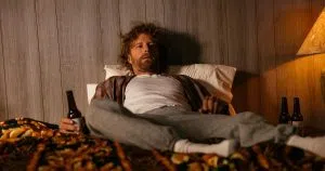 He starts out as the main role of the disheveled guy watching TV…